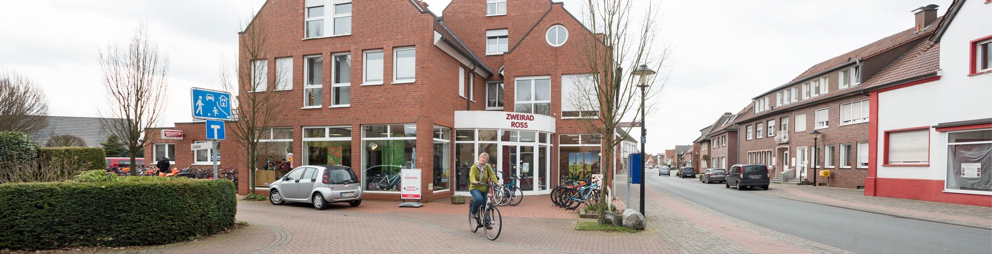 Unser Ladenlokal und die Werkstatt liegen im Ortskern von Sassenberg, zwischen Kirche und Rathaus: