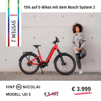 Premium E-Bikes zu reduzierten Preisen, zum Beispiel das UD3 von HNF Nicolai mit dem 85 Nm kräftigen Performance CX Motor, Gates Riemen und der stufenlosen Nabenschaltung Enviolo TR. Jetzt Probe🚴 fahren und das passende 😊 Einzelstück finden!