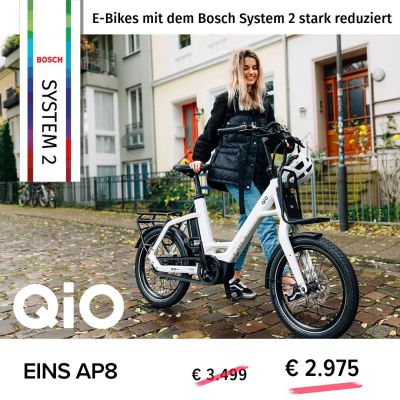 Premium E-Bikes zu reduzierten Preisen, zum Beispiel das E-Kompaktrad ‚Eins AP8‘ von QIO, dass sich jeder Lebenssituation anpasst. Die durchdachte Technik mit dem Bosch Active Line Plus Motor, 500 Wh Akku und Nabenschaltung machen den Komfort perfekt. Jetzt Probe🚴 fahren und das passende 😊 Einzelstück finden!