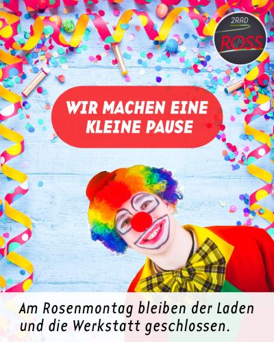 🔴 Am Rosenmontag haben wir geschlossen. 🟣 Ab Veilchendienstag sind wir dann wieder für euch da. Allen eine schöne Karnevalszeit 🤡 🤠 🥳 🥸 👯💃🕺