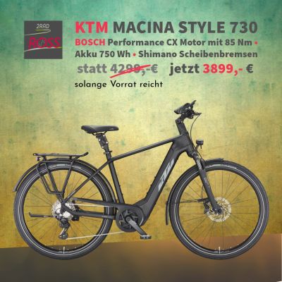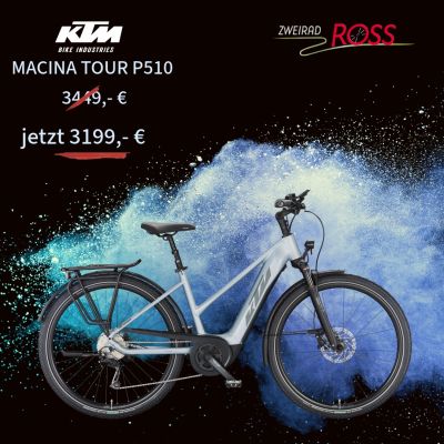 Mit dem 💪 kraftvollem BOSCH CX-Motor und dem großem 625 Wh Akku bist Du immer sportlich unterwegs und beim KTM Macina Tour CX 610 auch mit viel Komfort - jetzt für 2999,- € 🙂 statt 3899,- €. Solange Vorrat reicht.